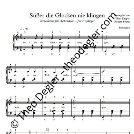 Das wohlbekannte Weihnachtslied Süßer die Glocken nie klingen, einfach gesetzt und damit auch für Anfänger geeignet. Erhältlich für Akkordeon.
